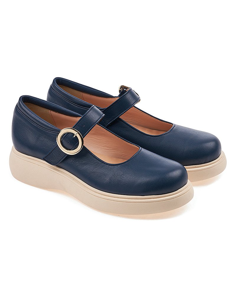 Μπλε δερμάτινες μπαλαρίνες Mary Jane